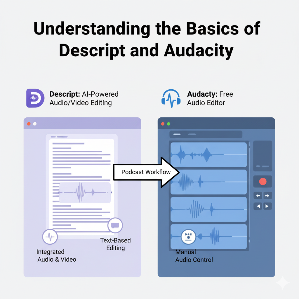 That is where this post comes in. We are going to compare two of the most popular options — Descript and Audacity and break down their strengths, weaknesses, and what they really mean for a busy podcaster like you. By the end, you will know which software fits your workflow best and helps you spend more time creating, not editing.
