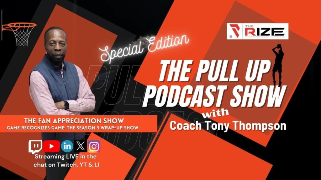 On August 25th, 2025, The Pull Up Podcast Show with Coach Tony Thompson closes the book on its third season with a fan favorite: The Fan Appreciation Show. Appropriately titled Game Recognizes Game, this finale brings together familiar voices and new energy—returning guests Coach Justin Allen, James Ward, Jay Smith, and Keanna Briscoe, alongside newcomers like “The Shot Doctor” Fred Hodson and youth producer Lil Tone, Coach Tony’s own son.
